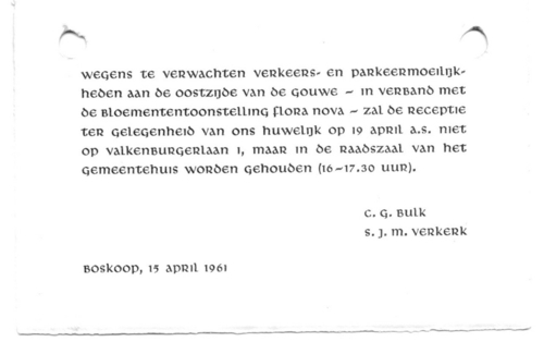 Cornelis Gerardus (Kees) BULK [P285] = Sophia Jeannette Meta (Fieke) VERKERK [P291]
